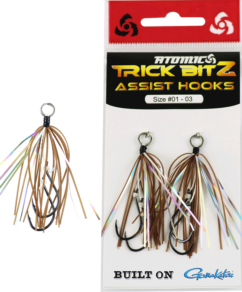 Atomic Assist hooks are perfect for anglers looking to customize their lures. They are suitable as an upgrade to any lure, particularly surface lures and feature strong nickel plated hooks and secure split rings.