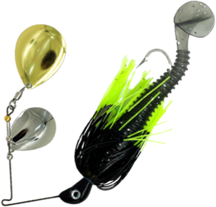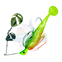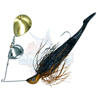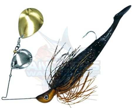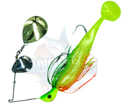 This has been a game changer for a lot of Cod fisherman, with a heavier wire than normal but not too heavy as to detract from the vibration and the right Colorado set up, it just sings eat me. This has been the forefront of Cod spinner baits for a long time. Coming with a stinger hook and trailer plastic, and also the choice of oversizing the rear blade for a much slower presentation. In sizes ½ 5/8 & 1oz. It comes in some great fish catching colours winch have accounted for numerous over a meter and also quite a number over a 100lb. Now these spinnnerbaits with double Colorado blades have been designed for dams & slow-moving waters, for faster waters there is the choice to tandem or double willows which will help you obtain depth quicker in faster waters.