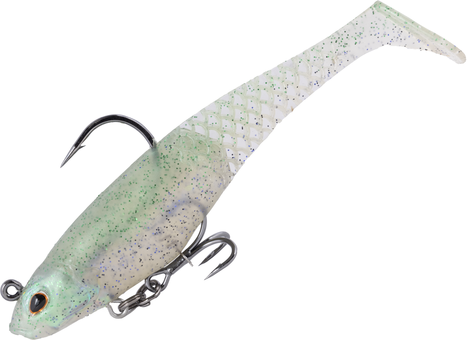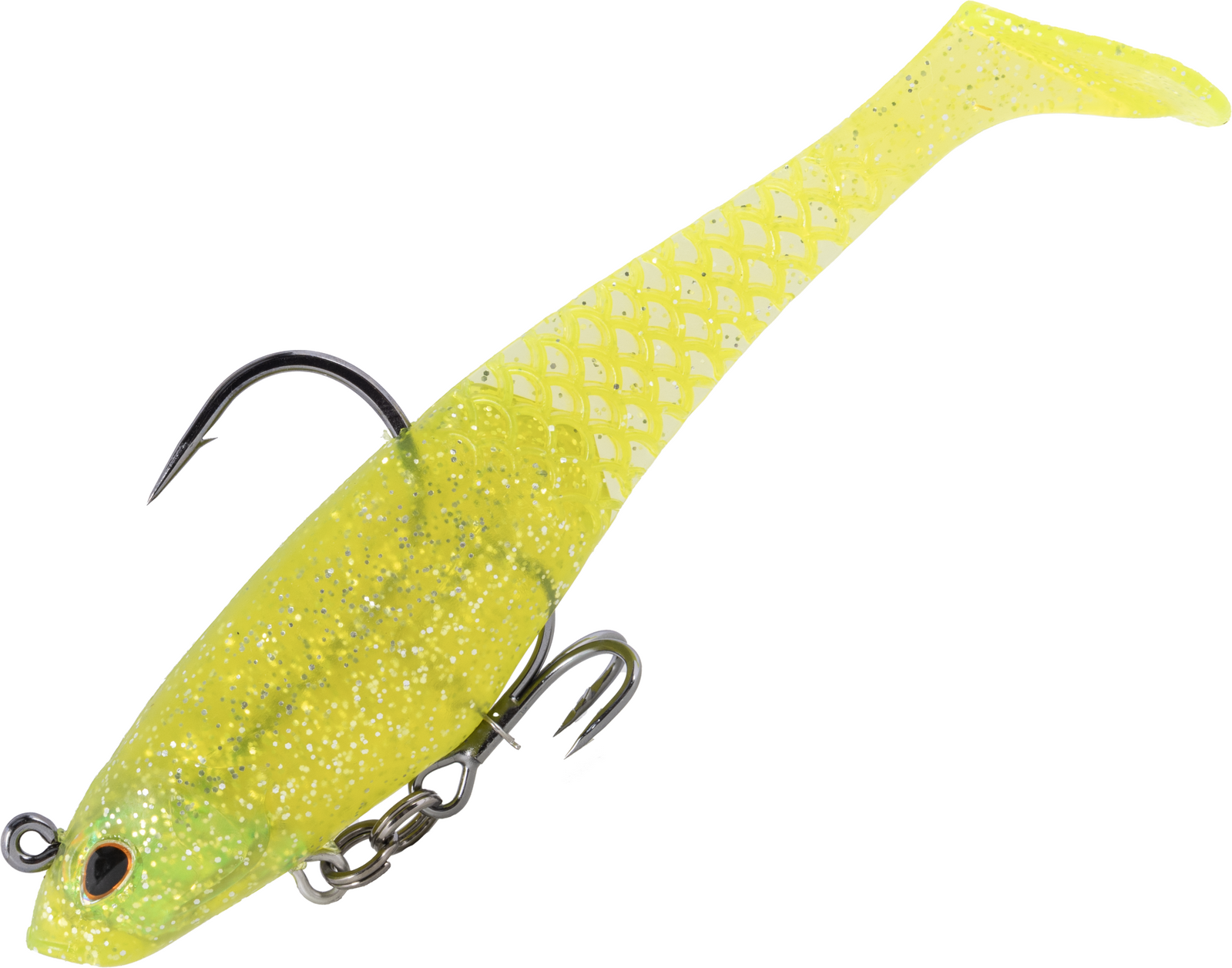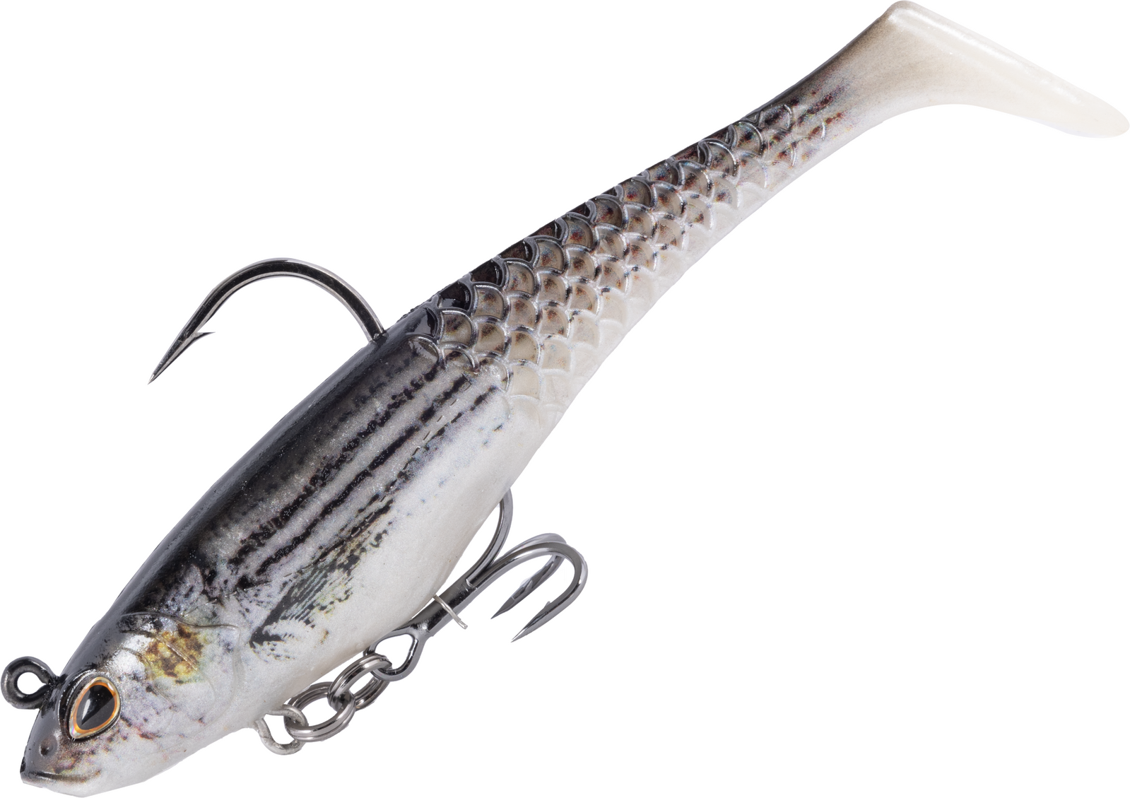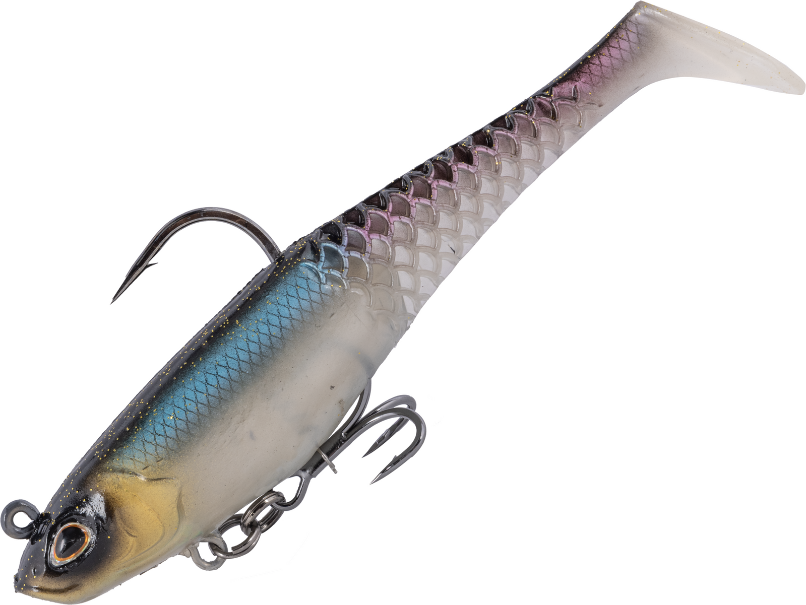 Big-profile, pre-rigged swimbait built to hunt trophy fish with true-running stability and maximum hookup power.