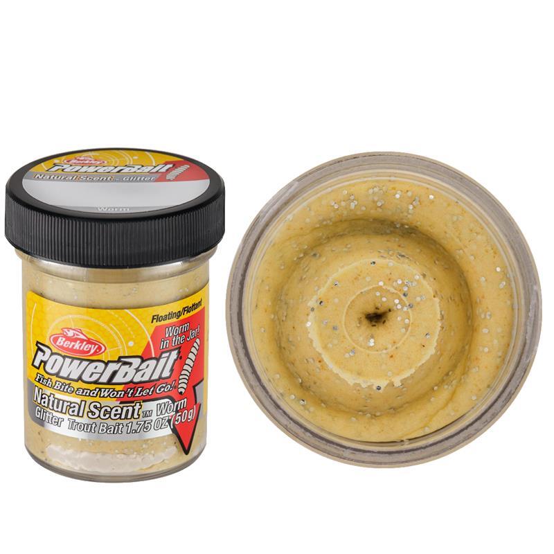 The new Berkley PowerBait Natural Glitter trout bait makes novice anglers good and good anglers great! Berkley scientists have spent over 25 years perfecting an irresistible scent and flavour - the exclusive PowerBait formula. Pack all of this into an easy to use and store dough format and you have a recipe to "Catch More Fish"!