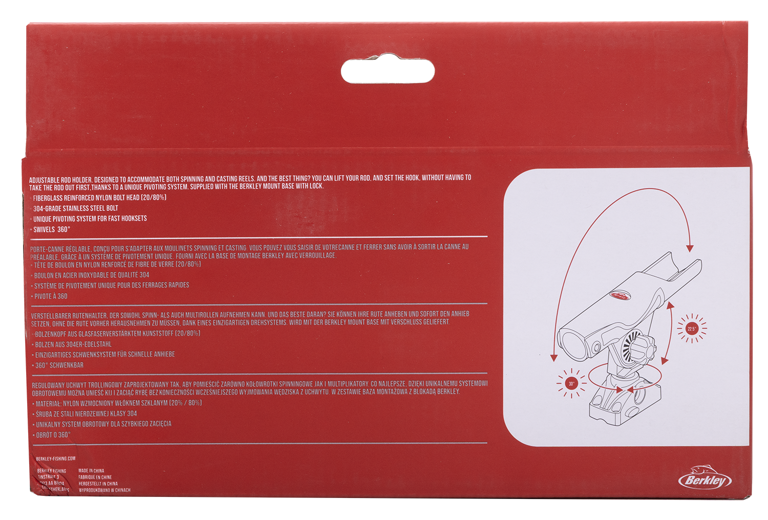 Mounting: Side or top gunnel; Berkley mount base with lock included