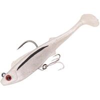 The Berkley Shimma Pro-Rig is built for big fish that pull hard. Fitted with a removable weighted hook and a single Owner STX Taff Wire Treble and a Hyperwire split ring, this bait is an out-of-the-packet solution for prized fish like mulloway, barramundi and Murray cod. With a thick body profile and a tapered off paddle tail, the Shimma Pro-Rig has a strong body roll and a wide tail action, perfect for slow rolling across weed beds, rock bars, and drop offs for those ambush predators. Built from durable Thermal Plastic Elastomer (TPE), the body is super tough and withstands plenty of punishment from predators with serious jaw strength, and raspy or toothy mouths! The Shimma Pro-Rig is available in ten colours and three sizes to suit a wide range of species in both fresh and saltwater environments. Every angler hunting serious fish needs a Shimma Pro-Rig in the tackle box.