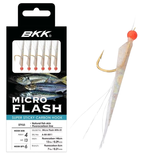 Available in multiple sizes to suit a variety of baitfish species and angling scenarios, the BKK Micro Flash Sabiki Rig Natural delivers unmatched performance, durability, and value.