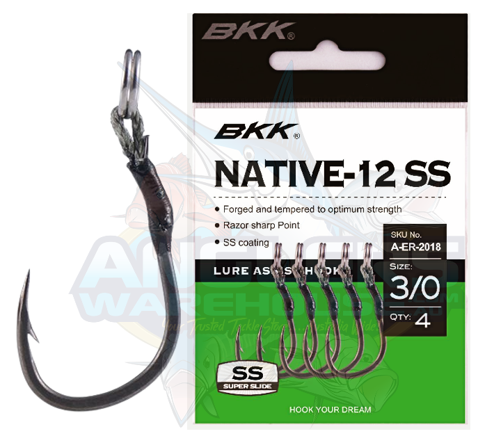 Each size of the BKK Native-12 is equipped with a split ring that perfectly matches the corresponding lure, ensuring superior performance. In addition, the three larger sizes also feature a solid ring that further enhances the hook's assist capabilities.