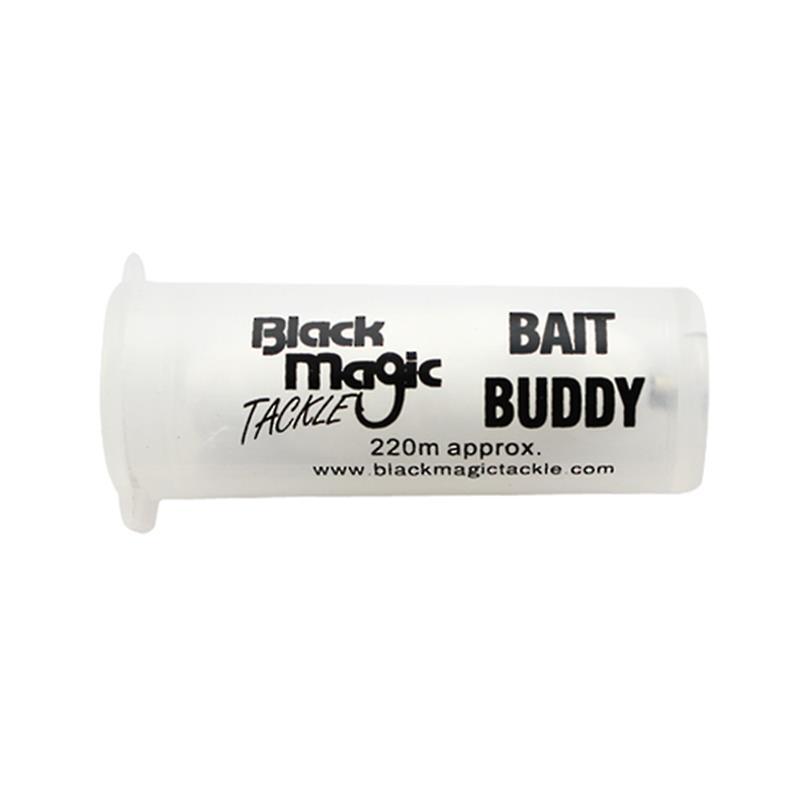 Black Magic Bait Buddy is a fine elasticised thread – it is not a monofilament but a special blend of very fine fibres that are virtually invisible when applied to the bait.