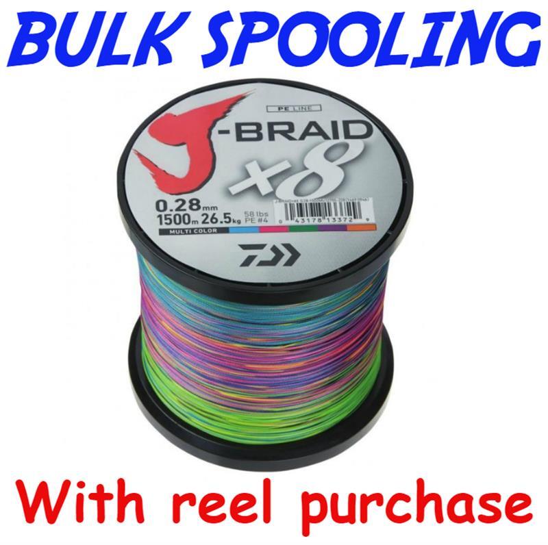 Daiwa J Braid X8 Multi Coloured Bulk Spool Up - price per 100 yards