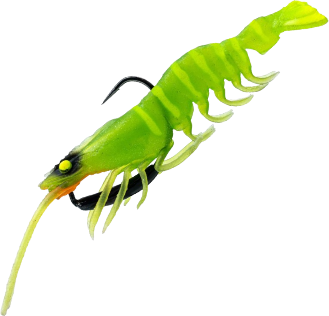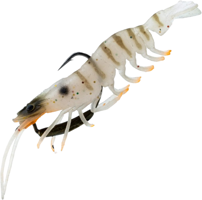 Match the hatch with Chasebaits realistic flick prawn! Designed to look super realistic with life-like legs, profile and tail these lures were designed to confuse fish. Made from ultra-durable 10X stretch plastic they are strong enough to handle rigorous use and catch several fish on the same lure. Throw them at structure, finesse them or slow-roll them, the weed-less design allows them to be used in various applications.