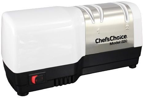 Easily apply razor-sharp edges with advanced Hybrid technology from Chef’sChoice. This new and efficient Hybrid 220 sharpener effectively combines electric and manual CrissCross advanced sharpening technology for an extremely sharp, burr-free edge with lots of bite. It’s easy to use, featuring two sharpening stages that provide a strong and durable arch-shaped edge. Using Chef’sChoice signature 100% diamond abrasives in both stages, Stage 1 is electric for sharpening and Stage 2 is manual for honing and resharpening—without power! Fast and easy to use, with no guesswork, the Hybrid 220 features elegant and durable brushed stainless steel knife guides. It sharpens straight and serrated edge knives, kitchen and household knives, sports knives and pocket knives.