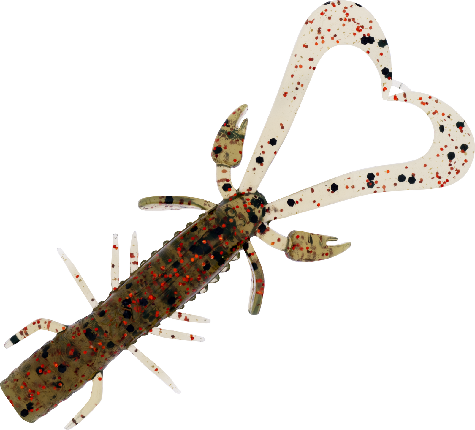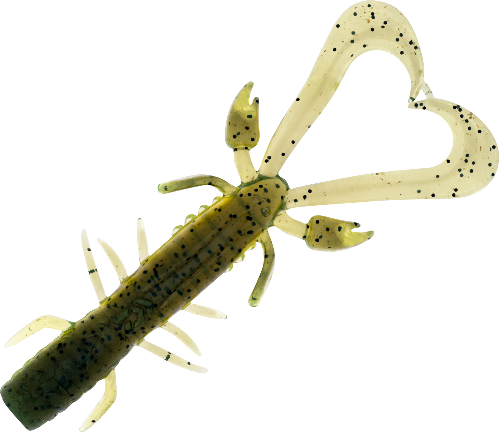 The combination of forward & rear facing legs give the perfect ‘quivering’ action whilst sinking on light jigheads, with the claws and wings also providing that subtle kick to draw bites. The two main curl tail legs off the back of the body are designed to work as the bait is hopped off the bottom, as a signal to nearby predators there is something to eat nearby.