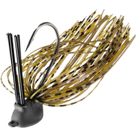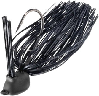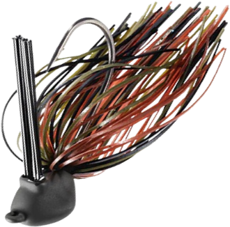Its compact skirt profile perfectly imitates shrimp, yabbies, and small baitfish — prime food sources for native predators. The head design concentrates weight forward toward the line eye, paired with a sharp-tipped shape that slips through cover with ease. A flat base ensures stability on the bottom, while the twin brush guard offers reliable snag protection without sacrificing hook-up performance. For best results, set the guard in a V-shape to maintain the perfect balance between snag resistance and hook penetration.