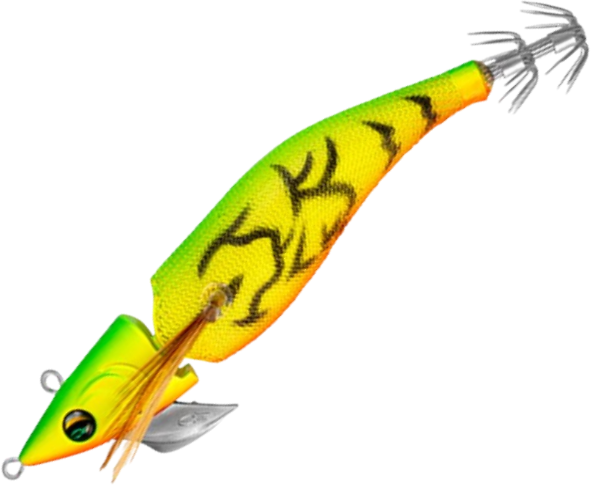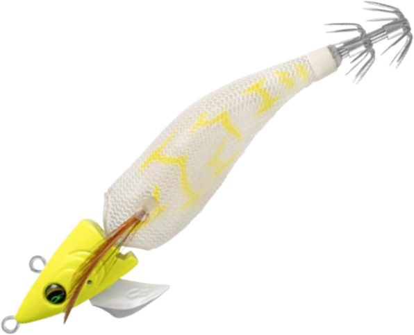 With its dual eyelet design, anglers can easily switch between a vertical darting action by tying to the nose, or a wide sliding glide via the head eyelet—giving you tactical control over how your jig presents to wary squid.