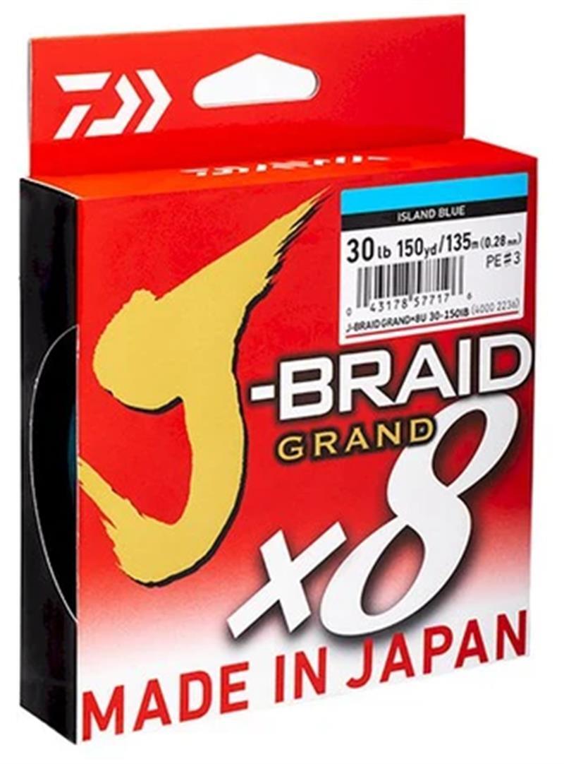 Made in Japan and available in sizes ranging from 6lb (0.6PE) to 120lb (PE16) in high-visibility island blue & depth-marked multicolor. The Daiwa J-Braid Grand is the smoothest and best performing J-Braid we’ve ever made.