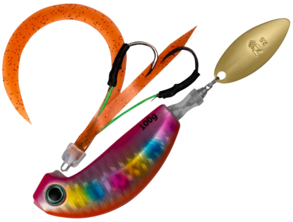 The Daiwa Kohga Blade Breaker Lure 80g offers a heavier option for anglers seeking larger fish in deeper waters. Featuring a distinctive tairubber design by Issei Nakai, this lure enhances fish strikes both on the drop and retrieval, thanks to its small willow blade and skirt setup. Specially upgraded for the Australian & New Zealand market, it includes larger, stronger hooks and a fluorocore assist cord for reliable hookups. The 80g version is ideal for reaching greater depths and handling larger species such as snapper, trevally, and kingfish.