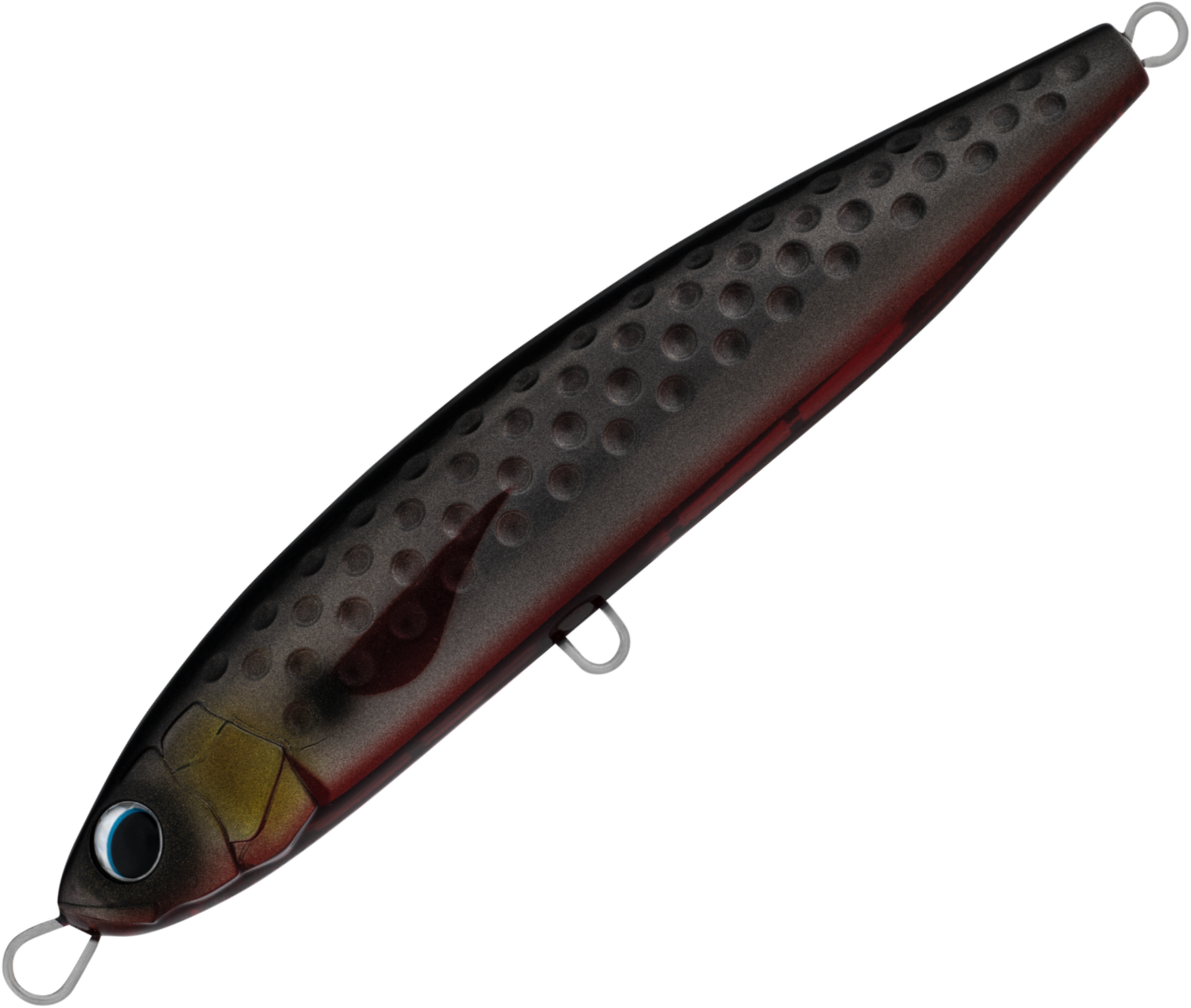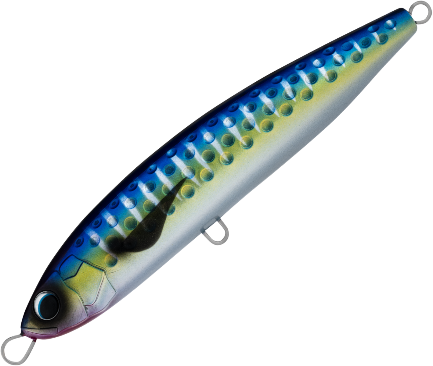 The Saltiga Rough Ride construction is unique, with first glance immediately noticing the dimpled pattern like a golf ball. This pattern stabilizes the lure both in the cast through the air, and when retrieving through the water. The dimples create a stable pocket of air hugging the lure’s body, preventing tumbling, and aiding in swimming stability in rough water conditions.