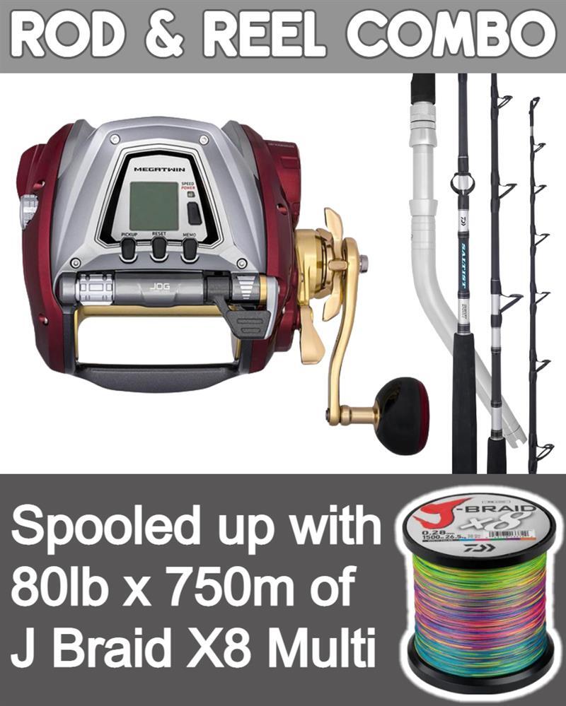 Daiwa Seaborg 1200MJ Electric Fishing Reel, spooled with 80lb x 750m Daiwa J Braid X8 Multi Coloured Braided Line, matched with a Daiwa Grandwave GW 66XHFD Dendoh Boat Rod makes for the ultimate Electric Fishing Rod & Reel Combo for deep drop fishing.
