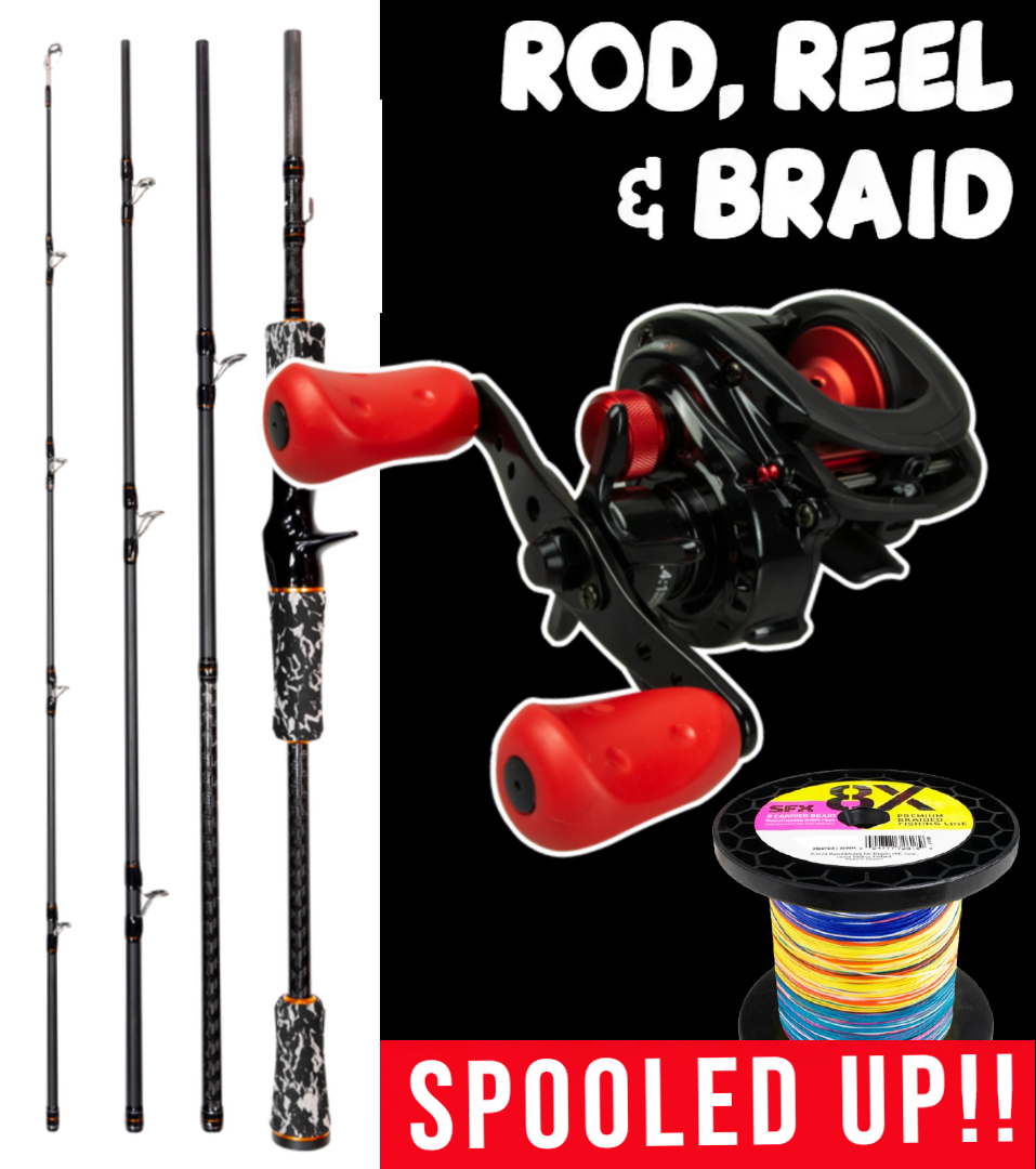 At the heart of the setup is the Storm Discovery Gen II Travel Rod, paired with the smooth, reliable Abu Garcia Max 4 X Baitcast Reel, and pre-spooled with SFX 8X Braided Line. Together, these components form a versatile, high-quality baitcast combo suited to both beginners and experienced anglers.