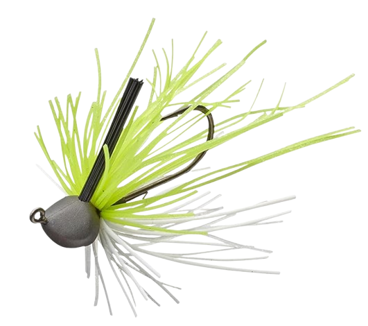 Small soft plastics such as craws or creature baits pair perfectly with the wire keeper and complement the jig's finesse profile.