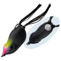 The Evergreen Kicker Frog Jr is a nice compact frog with a great presence on the water. It's easily inhaled and has a great hook-up rate (unlike many other frogs) due to is unique tall body shape and hook setup (single hook vs the usual double hook setup of many frogs). These little frogs cast a mile and have a great action on the surface to draw the bites that matter. Like many frog imitations, it's a hollow body and this soft form allows it to push water around, just like a natural frog.