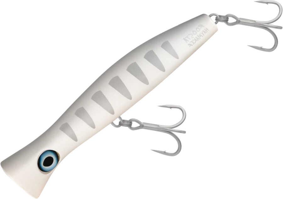 Built for strength, the Roosta Popper Haymaker KO features extra heavy-duty 7xx fish rings and is rigged with two 4/0 5xx BKK treble hooks. This floating lure is designed for precision casting and provides excellent buoyancy, keeping it on the surface to attract those explosive topwater strikes. Designed to perform in the roughest conditions, this lure will put your gear—and your skills—to the test.