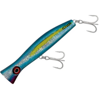 The Halco Roosta Popper Haymaker KO Lure 195mm is a powerhouse topwater lure crafted for serious anglers targeting the toughest fish on the planet. Whether you’re chasing Giant Trevally, Dogtooth Tuna, or other aggressive saltwater predators, this popper is engineered to handle the challenge. Its large profile and heavy-duty construction create a splash that draws fish from a distance, making it ideal for surface fishing.