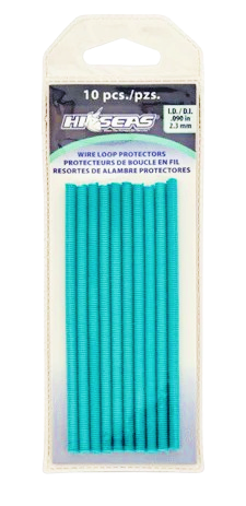 Available in multiple sizes to suit a range of leader diameters, Hi-Seas Wire Loop Protectors are ideal for improving the durability of trolling rigs, shark traces, and heavy monofilament leaders. These anti-chafe springs create a barrier between your tackle hardware and leader loop, extending the life of your rig and helping to reduce failure at the most critical point.
