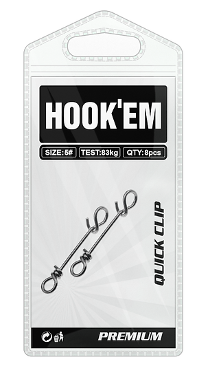 Hook'em Quick Clips are a great solution for when you regularly change out your rig or lure. Available in 6 size options and finished in a black nickle coating.