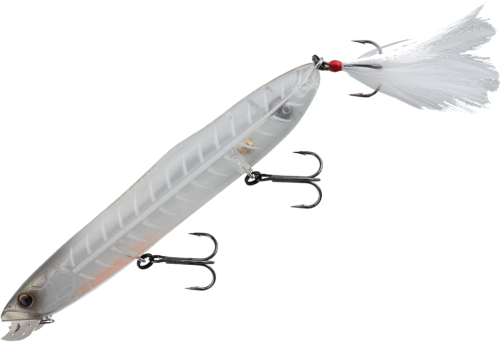 The Iron mouth is a large topwater with a fantastic ability to turn almost 360 degrees on itself when walked, and its metal mouth creates a unique disturbance on the surface. The Iron Mouth is a gun topwater for Mangrove Jack and Barramundi.