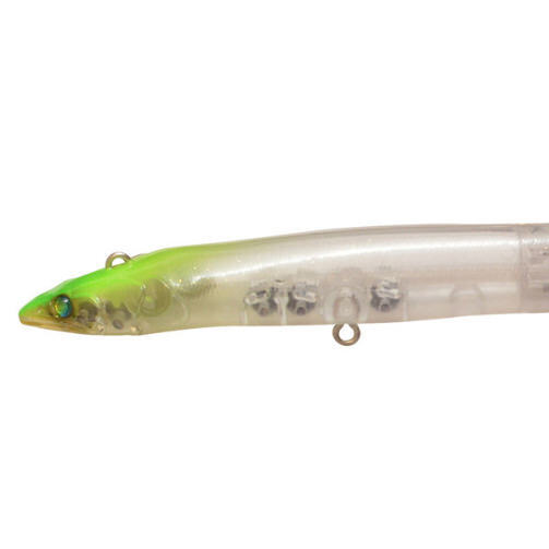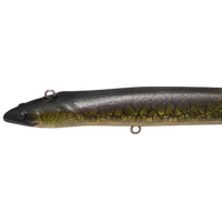 Discover the revolutionary Megabass Eeler Lure 235mm, designed to transform your fishing experience. Featuring an innovative four-joint design, this slide bait offers a "swell-type action," where its elongated body dramatically sways left and right. This action mimics a natural swimming motion that triggers aggressive feeding without alarming the fish, allowing you to capture multiple catches from a single prime spot. The versatile casting ability of the Eeler Lure means it performs exceptionally well with a medium-action F4 class rod, eliminating the need for specialized equipment. Its unique slim silhouette combined with a lifelike swell action entices even the wiliest monster fish in both shallow and mid-water levels. Engineered with cutting-edge Megabass technology, the Eeler Lure is set to redefine fishing effectiveness.