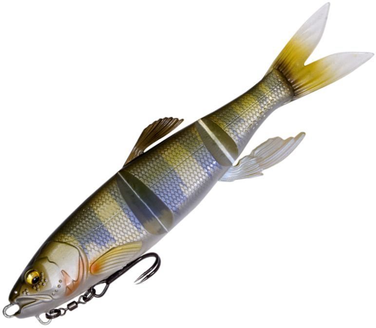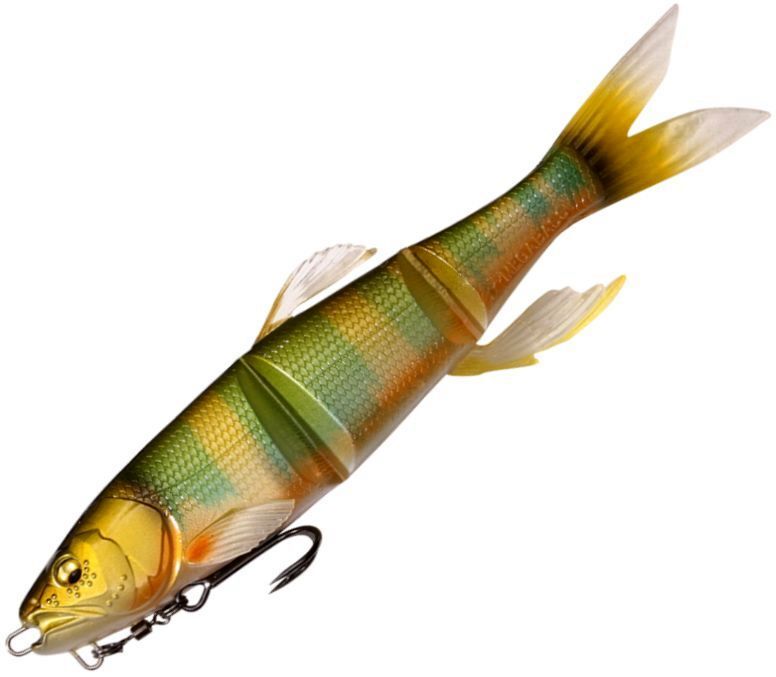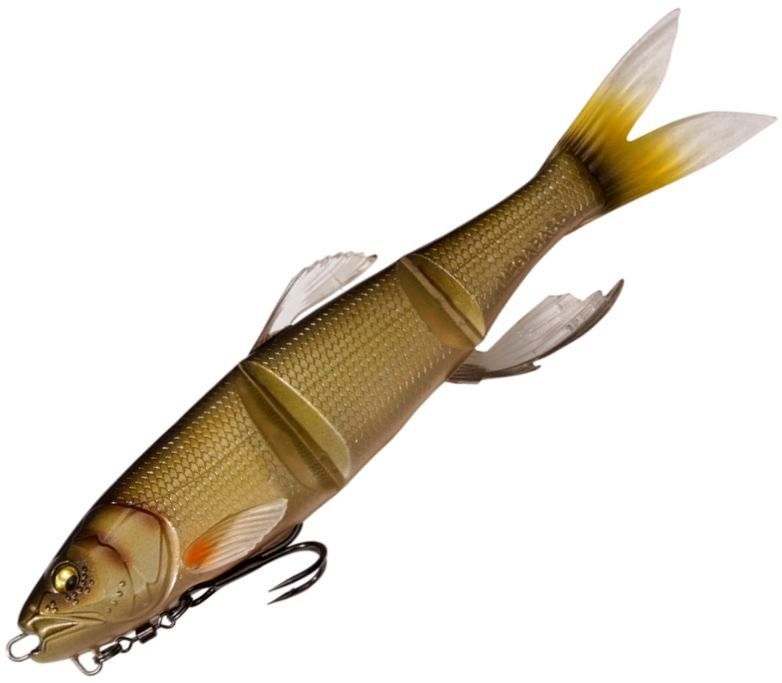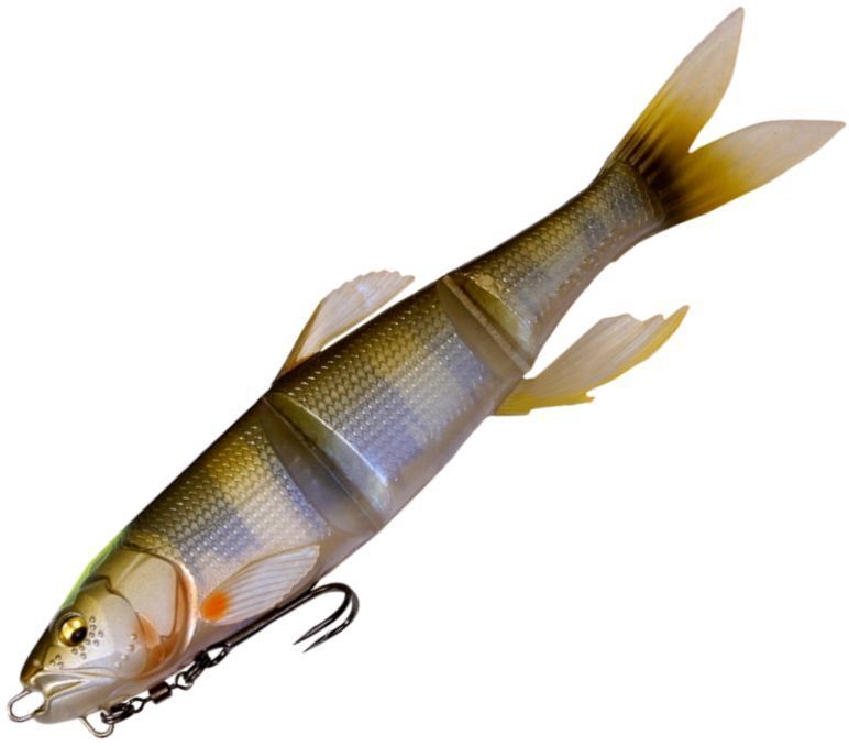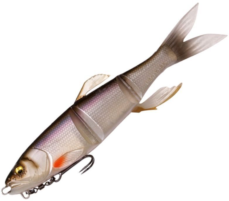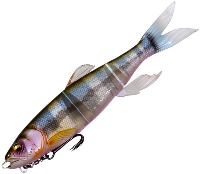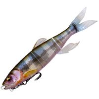 MAGDRAFT "Haslaver" is a new dimension swimming manipulator with many movable sections that "always move". The ultra-realistic swimming shape with a triple body and ultra-thin joints combined with the live fins that glisten and flutter with the slightest flow of water , show off a realistic swim that is full of life with just a free roll. The supple action creates a natural bait that should be called a pseudo-living body. With a long jerk just below the surface of the water, it shows a teleportation escape action that makes a real panic bait run away. For targets that did not eat while chasing straight retrieve, switch on predatory instinct with jerk and bring it to bite with one blow. Alternatively, the amazing predation rate of HASU RAVER is the amazing predation rate that can be eaten just by adding simple actions such as the flickering that occurs at the moment of stopping or the panic escape that suddenly increases the retrieve speed. Megabass' original MAGHOLD ( PAT.P) system has hooks magnetically attached to the body to camouflage the presence of hooks. Eliminate the sense of incompatibility against tough targets and show off flexible and natural actions. HASU RAVER is a new existence that far exceeds the performance of swim baits by Adjusting not only the lotus pattern in the reservoir but also the large bait patterns nationwide such as falling sweetfish, dace, and squid.