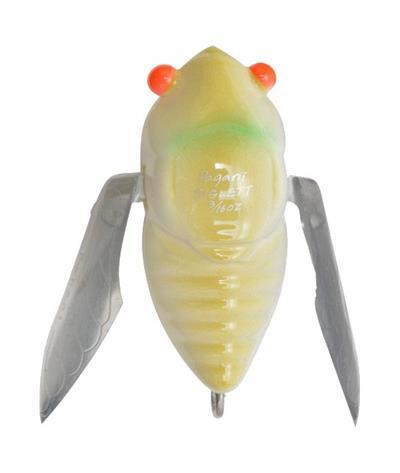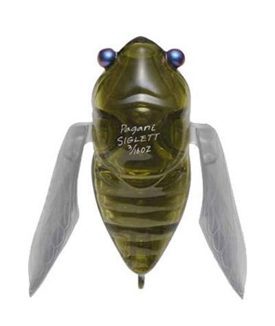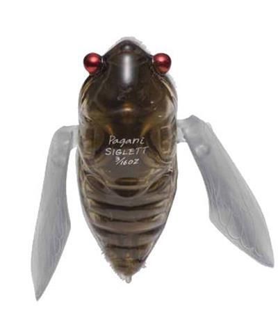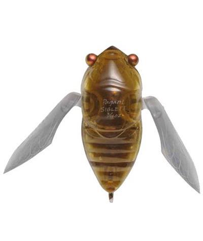 Siglett is a winged bug-bait modeled after a Japanese cicada. Its tungsten alloy balancer inside its chamber is sound-tuned to mimic the Higurashi cicada of Japan. Also, it looks just like one, complete with a pair of translucent wings made of semi-hard plastic which not only slide up & down, but also act as large lips for jittering bug action. Since line eye is located at its tail, Siglett casts with the least air resistance, insuring surprisingly good casting distance and accuracy as a winged bug bait. When retrieved, Siglett’s wings naturally ‘open up’ and each ‘wing lip’ starts to crawl alternately as it jitters along. Fast to slow-steady retrieve in open areas and stop & go twitching action under overhangs are the most effective application. Enjoy a relaxing top-water fishing day with Siglett.