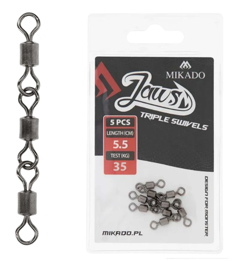 Mikado Jaws Triple Swivels XL 35kg are engineered for serious anglers demanding superior rig performance under pressure. Designed with three high-strength, interconnected swivels, this advanced system delivers maximum flexibility, optimal stinger positioning, and complete torsion control for your soft plastic setups.
