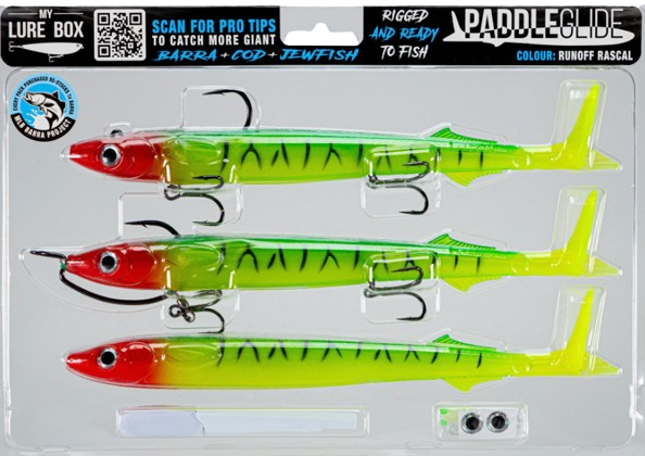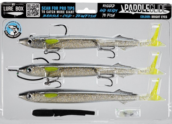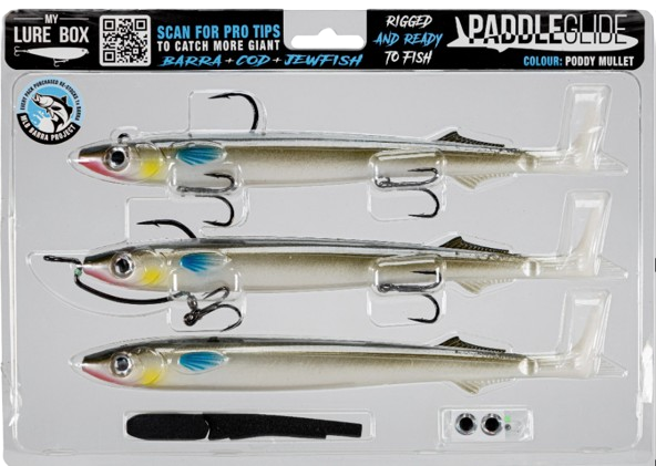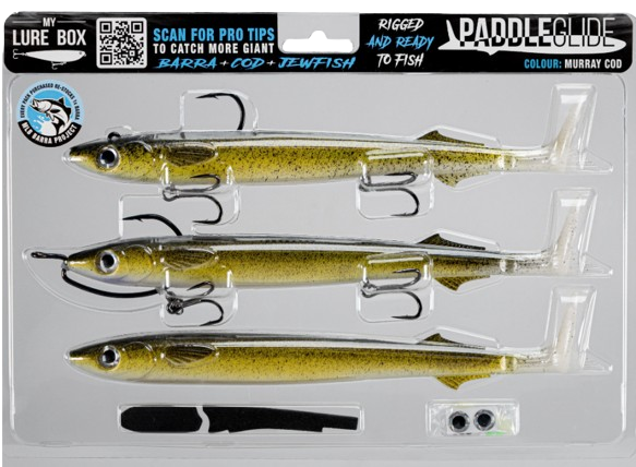The My Lure Box Paddle Glide Lure 9.5 Inch is a premium swimbait designed for serious anglers chasing trophy-class predators such as barramundi, Murray cod, and jewfish. Engineered with precision and built tough, this lure offers unmatched versatility across multiple techniques – from topwater paddling to deep-water slow rolling and trolling.