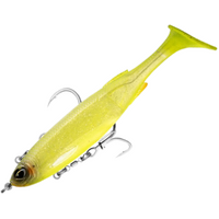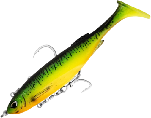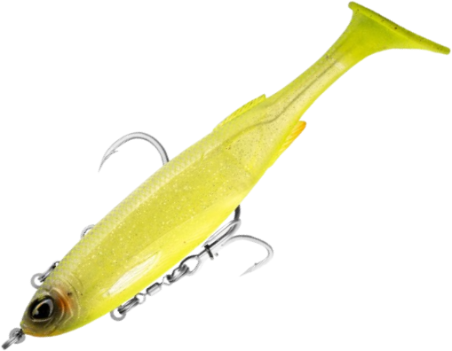 Heavy-hitting, pre-rigged paddletail built “battle ready” with a pivoting hook system, long-lasting TPE body and true tracking straight from the pack.