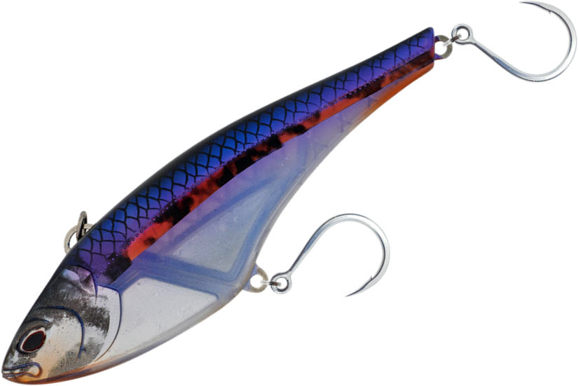 The MADMACS is a sinking, high speed trolling minnow with an amazing vibrating action. The Patented Auto Tune System ensures it will always troll straight and run perfectly across a huge range of speeds – as slow as 5kn all the way up to 12knt. It will run at a depth of around 1.8-2.4m when trolled at slower speeds and around 1-1.2m depth when trolled fast. The ability to troll at all speeds makes this a must have lure in every spread. Visit the Nomad Design YouTube channel for details on rigging.