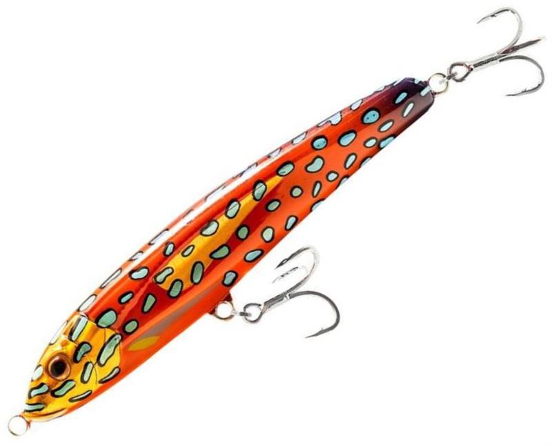 The sinking 125 has the internal weights placed to maximise casting but also to allow the lure to be retrieved with a sub surface walk the dog action, which sees the lure able to turn nearly 180 degrees underwater when retrieved slowly with a walk the dog “twitching” rod tip action. The sinking 125 riptide literally dances side to side underwater when fished with this retrieve, and this is an action difficult to replicate with any other lure.