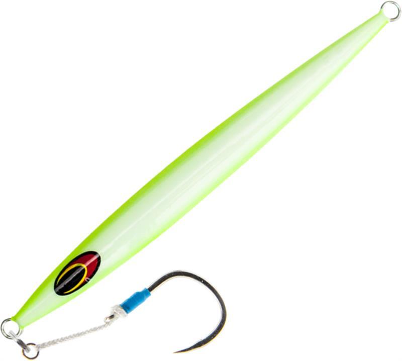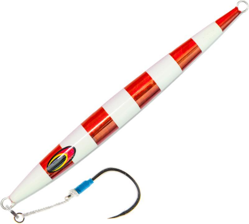 The Streaker jig is a high pitch jig designed to be worked faster. It is perfect for yellowfin, Bluefin, amberjack and a variety of other Species. It has gained huge popularity in the 80-120g sizes in the NE Coast area when trying to mimic a sand eel when jigging striped bass and bluefin tuna. The sizes available mean you can fish this in shallow water for grouper and snapper, through to deep water for yellowtail, amberjacks and tuna.