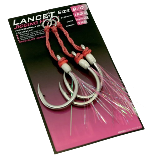The Oceans Legacy Lancet Jigging Heavy Assist Hooks are engineered for serious anglers targeting powerful pelagic and reef species in deep water jigging scenarios. Designed for strength, durability, and precision, these hooks feature a custom-forged Japanese stainless steel alloy, paired with ultra-strong 16X braided Kevlar cord, making them the ultimate weapon when targeting tuna, kingfish, amberjack, dogtooth tuna and other large saltwater predators.