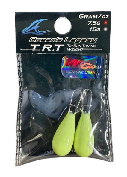 Available in 7.5g and 15g sizes, the Oceans Legacy Tip Run Weights feature a high-intensity green UV glow finish that increases visibility and triggers strikes in low light or murky water conditions. Perfect for both inshore and offshore squid fishing, these weights are a must-have for serious Egi anglers looking to fine-tune their setup for optimal performance.