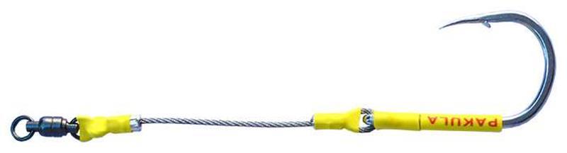 The Pakula Single Hook Swivel Rig allows the hook to remain point up regardless of what the lure is doing. Designed for the Pakula Trolling Lure Range