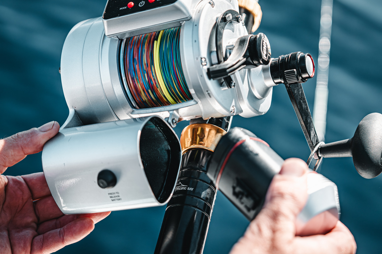The integrated lithium-ion battery frees you from deck cords and clutter, giving you true mobility from gunwale to gunwale. A high-torque brushless motor delivers smooth, reliable pulling power, while the digital line counter with auto-stop helps you return baits to the exact strike zone — whether you’re working ledges at 120 metres or probing canyons much deeper.