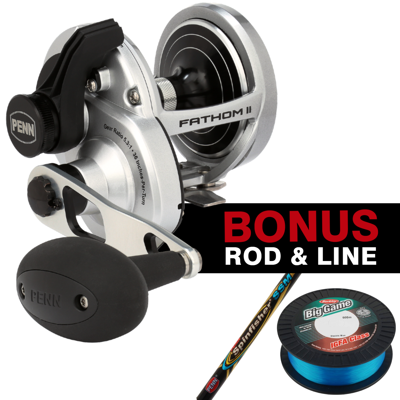 Penn Fathom II 30LD Lever Drag Overhead Reel + Bonus Rod & Line