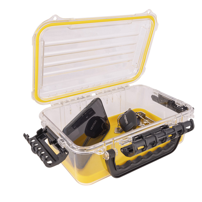 Made of tough crystal clear poly-carbonate with cam-action latches and Dri-Lock O-ring seal these cases are designed to be airtight and waterproof. While the non-corrosive pinned hinges provide a strong solid hinge that will last through years of use. The soft rubber lining protects valuables inside. An additional sheet of the rubber lining is included to shield the contents from the sun or to provide privacy to the contents of the case. Perfect for boating, fishing hunting, camping or any situation where secure dry storage is needed.