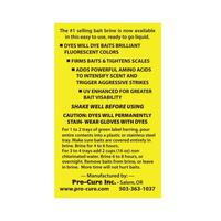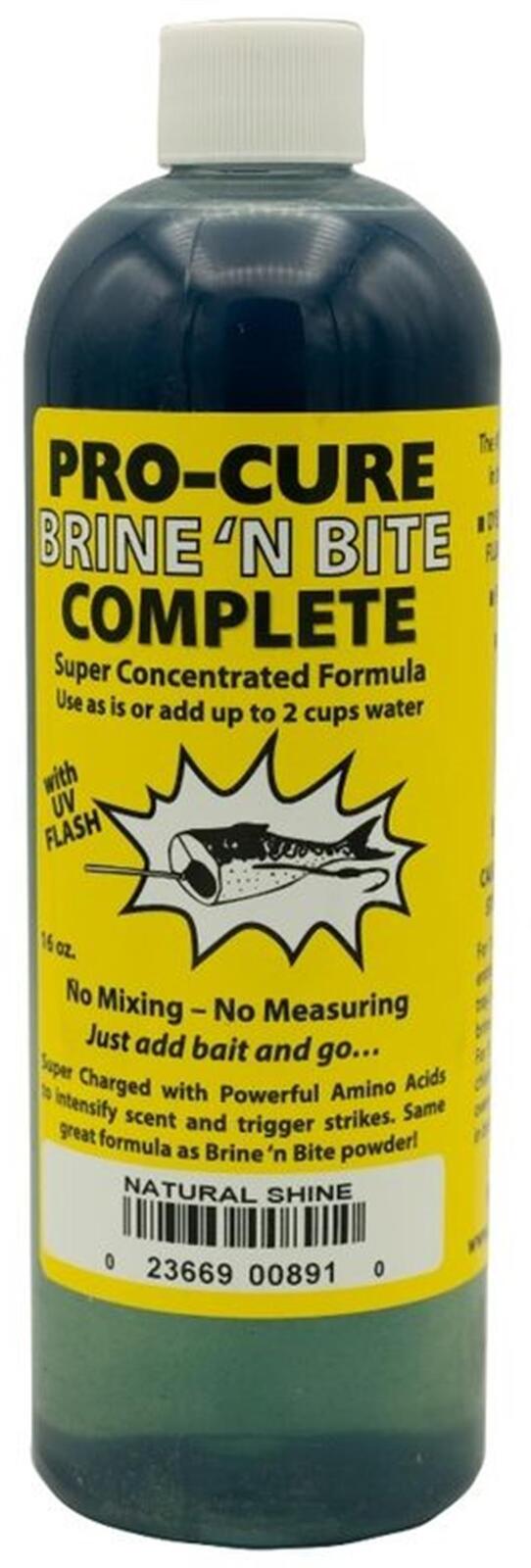 The same great formula as Pro-Cure's legendary Brine 'N Bite Powder, in a ready to go mix that includes dyes, UV and brighteners to pimp your bait for added attraction.