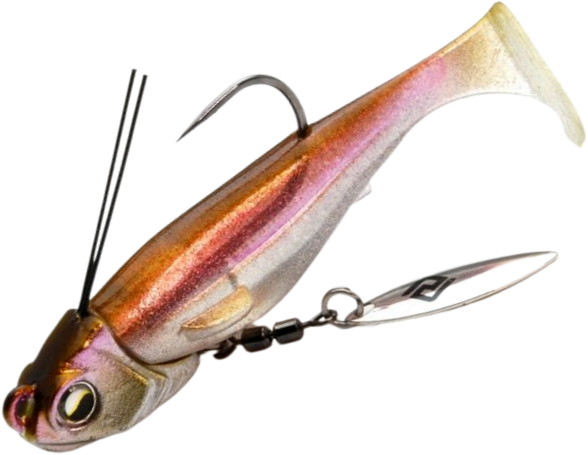 • Tiny blade attached via a double-clen swivel adds flash without hindering natural worm action