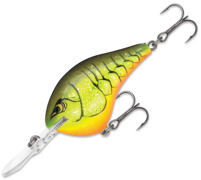 The DT-8 is a floating crankbait, allowing it to rise on pauses and back out of snags.