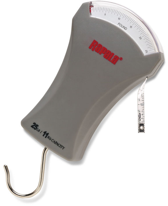 No batteries required with this compact, top view mechanical scale. Weighs fish up to 25 lbs. on durable hook. Includes 32” retractable measuring tape. Includes both pound and kilogram increments.
