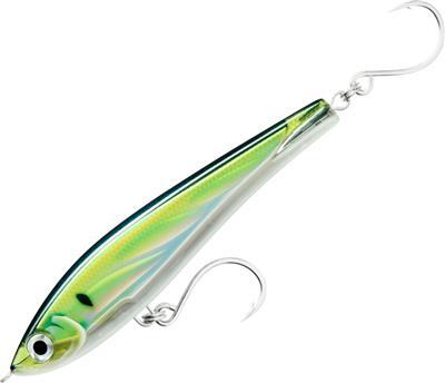 Designed for fast and aggressive retrieves, the X-Rap® Magnum Stick 17 swims in wide S curves on the retrieve. Horizontal line tie allows for a wider swimming action. Once stopped, this lipless stick bait dives head-down with a fish-triggering flutter. Heavy-duty construction withstands savage big blue water predators. Weighted for long-casts, the scalloped internal reflective construction gives life-like flash even with the slightest motion.