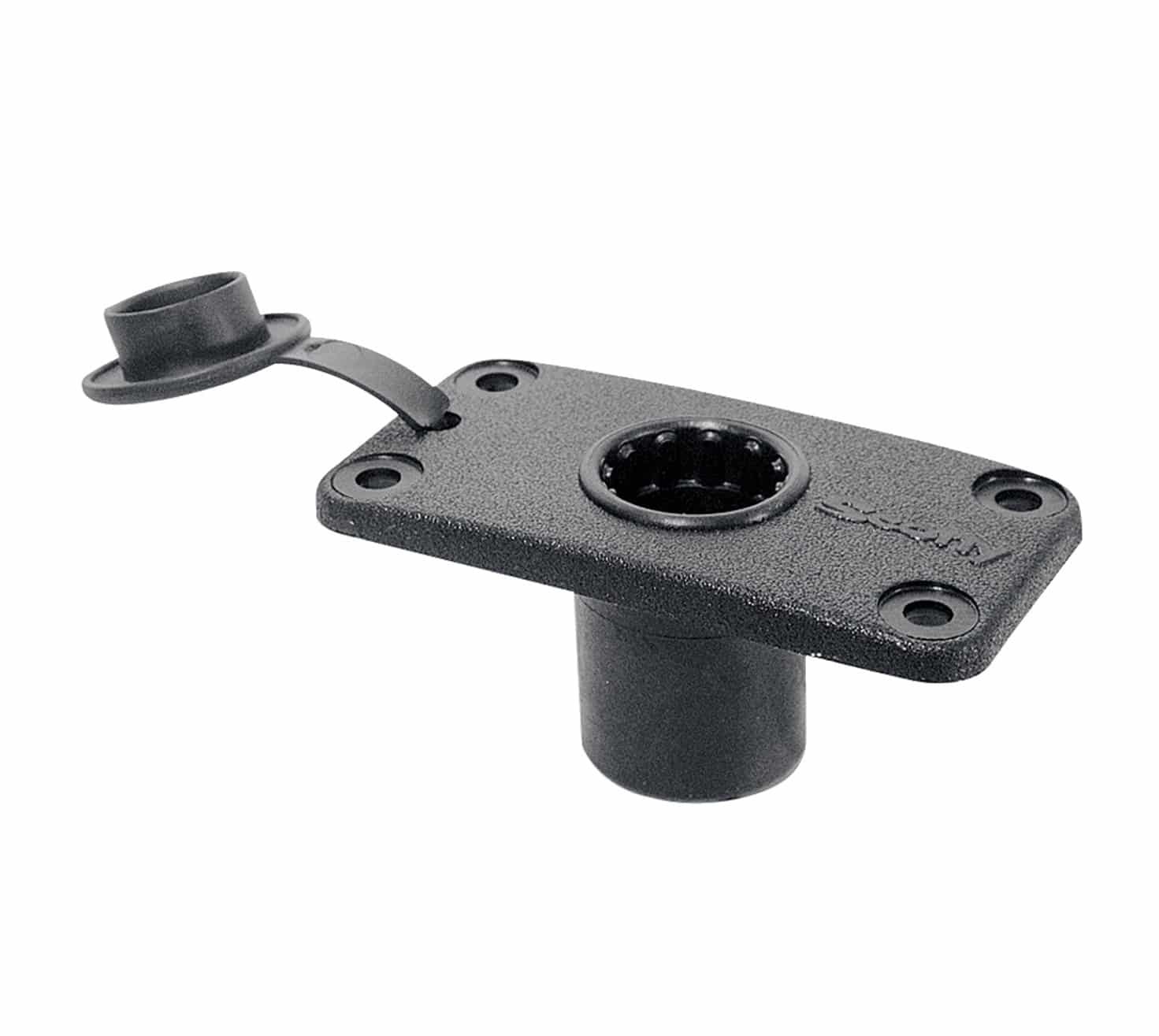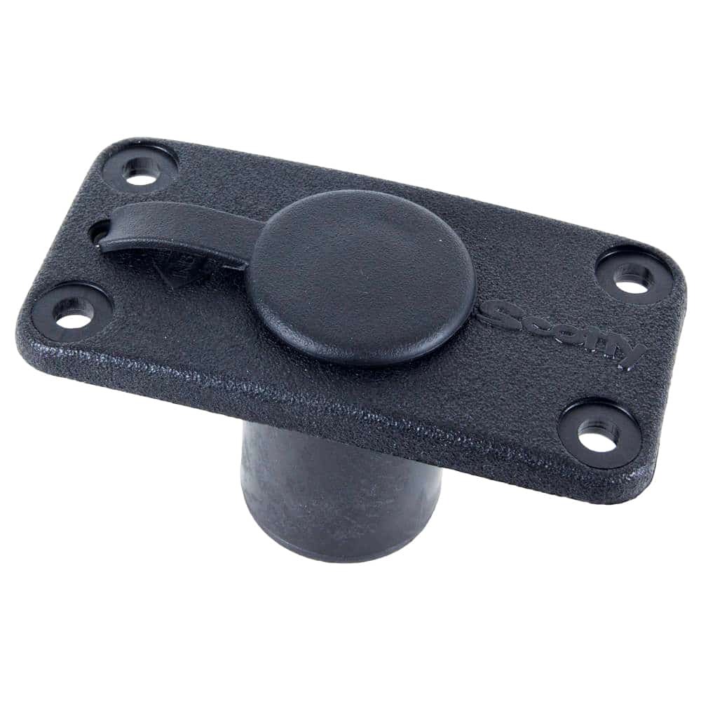 The Scotty Flush Deck Mount 244 fits right into your kayak deck and accepts all Scotty post mount rod holders. The bottom of the receptacle is sealed, and the attached cover keeps out splash. Apply a bead of silicone sealer under the mount to ensure it’s watertight.