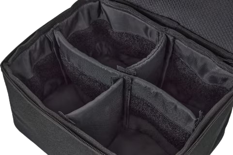 Internal Layout: Adjustable Velcro dividers + mesh zip pocket in lid