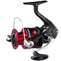 With a drag rating between 3kg and 8.5kg depending on size, this reel has the stopping power needed for estuary and light inshore fishing. Finished in a sleek black and red cosmetic, the Shimano Sienna FG pairs perfectly with both fibreglass and graphite rods for a smart, balanced setup.